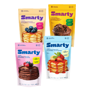 Під цією торговою маркою виробляються 4 СКЮ сумішей для приготування панкейків та мафінів. Суміші ТМ Smarty (СМАРТІ) – це найсмачніший корисний і швидкий в приготуванні сніданок, легкий обід або перекус! Корисні інгредієнти, які використовуються для приготування сумішей: борошно червоного рису, борошно зі спельти, гороховий протеїн, какао порошок, кориця, родзинки та підсолоджувачі замість додавання цукру.